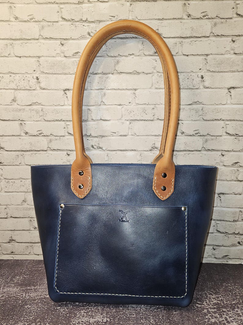Small Tote Bag with wrapped leather handles with a 9.5" drop.