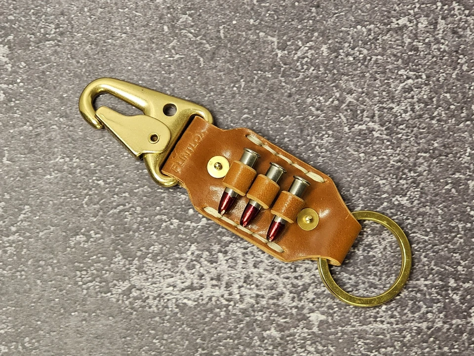 Gunslinger Belt style keychain with .22 long-rifle cartridge loops and snap caps.